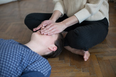 Durch das Auflegen der Hände auf verschiedene Stellen am Körper wird die Energie wieder aktiviert.